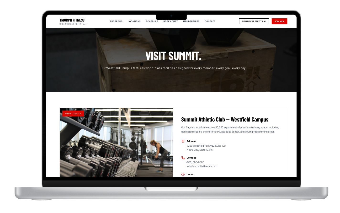 Triumph Fitness Theme delivers a bold, energetic look for clubs that want a strong digital presence. Its bright styling and confident presentation help fitness-focused brands promote memberships, classes, and standout experiences.